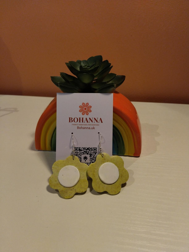Fresh, sunny and full of joy — our Lemon Drop Flower Earrings bring a little sunshine wherever you go. Handmade from polymer clay in soft yellow and white, they’re lightweight, easy to wear, and guaranteed to brighten any day.