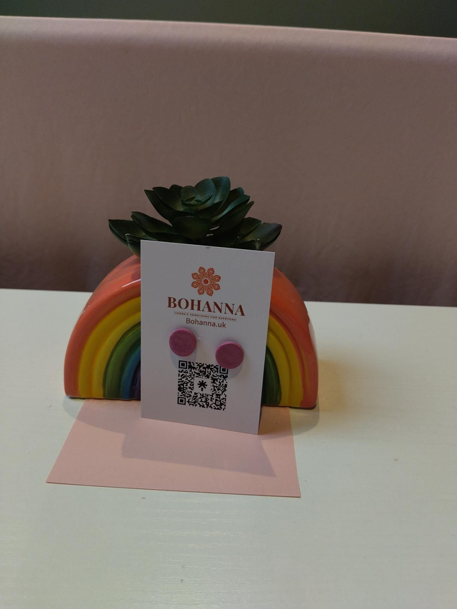 pink stud earrings, polymer clay studs, handmade earrings uk, colourful jewellery, minimalist earrings, lightweight studs, fun earrings, handmade gifts uk, Bohanna UK