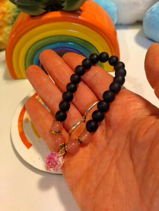 Sweet, bold, and full of charm β this Raspberry Bracelet pairs soft blush pink beads with grounding matte black tones, finished with a shimmering raspberry-shaped charm that catches the light beautifully. A perfect balance of boho elegance and fun, this bracelet celebrates individuality and the joy found in lifeβs little details.
