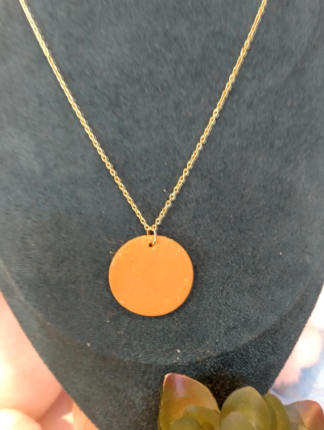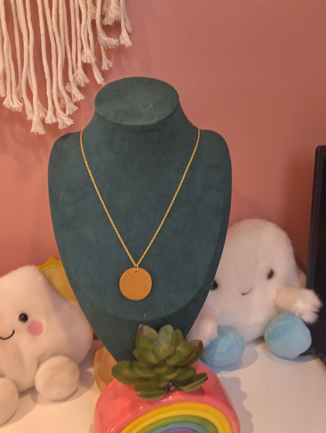 Subtle sparkle meets timeless design with our Golden Circle Necklace. Handcrafted from polymer clay with a warm golden hue and a touch of shimmer, each pendant is polished to a smooth finish that catches the light beautifully.