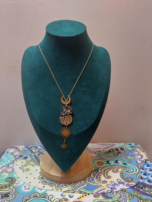 Make a statement with this elegant longline necklace, featuring handcrafted polymer clay beads and delicate gold-filled celestial components. Suspended on a gold-filled chain, it catches the light beautifully, adding a touch of cosmic charm to any outfit. Perfect for layering or wearing alone, this necklace comes beautifully gift boxed, making it an ideal present for someone special—or a treat for yourself.