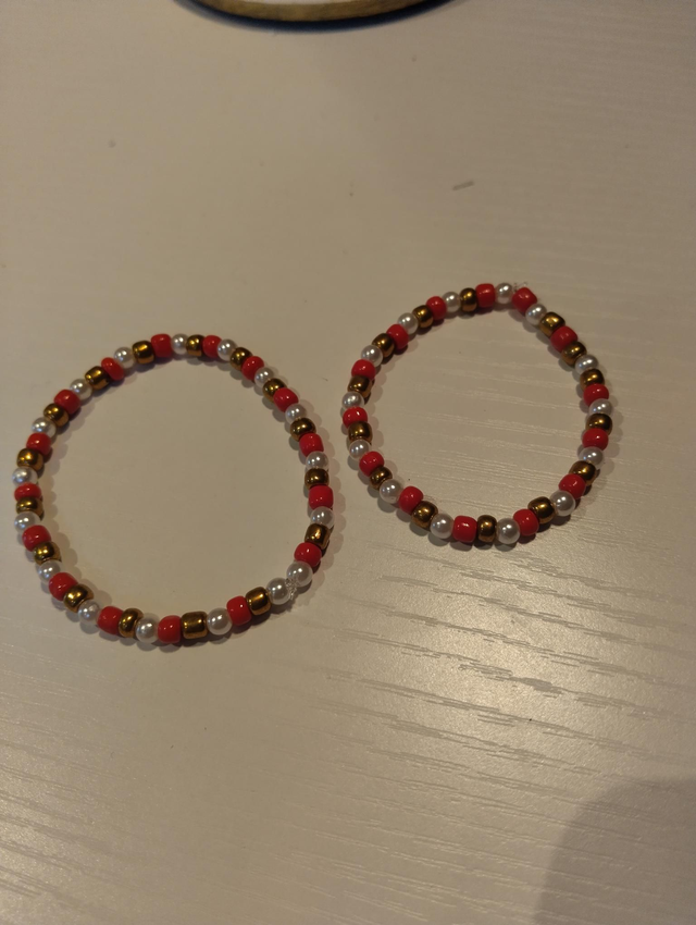 Bright, fun, and full of colour — the Raspberry Beaded Bracelets are a perfect everyday pop of joy. Each bracelet is handmade with a mix of rich red seed beads, shimmering gold accents, and soft pearl beads for a touch of elegance.