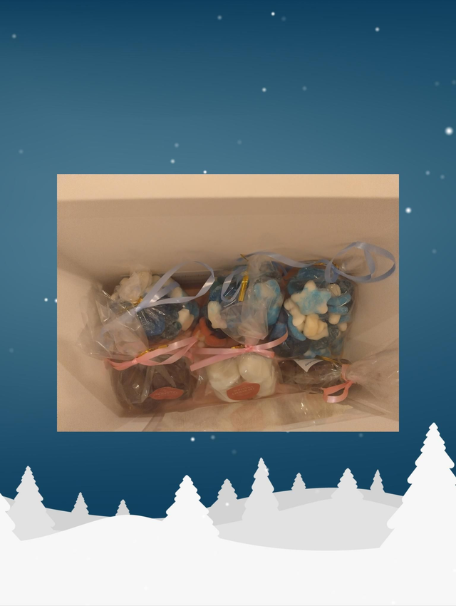Each box is lovingly packed with a handpicked mix of our vegan milk chocolates β in charming festive shapes like hearts, Santas, and Christmas trees β alongside a curated selection of sweets.