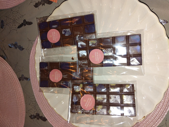 Ingredients: Cocoa mass, rice powder, cocoa butter, sugar, vanilla extract, sea salt, natural colouring (cocoa butter-based).